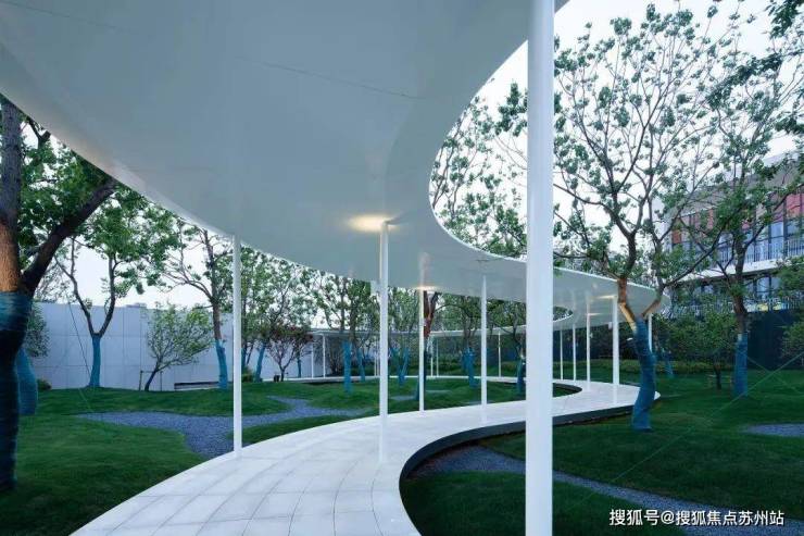 设计师攫取江南水乡的水与折扇进行二次转换,以起风后的一系列关于水、云、光、影的变化为语言来呈现空间的在地性设计。
