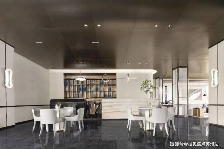 VIP空间旨在营造一个静谧的洽谈区域。设计师从微风之夜里的剪影中提取自然元素的形态来打造出细腻精致的空间。