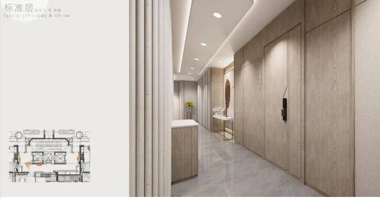 公区效果图中的软装、灯具、植物等均为展示意向,并非最终交付标准,请予以留意。