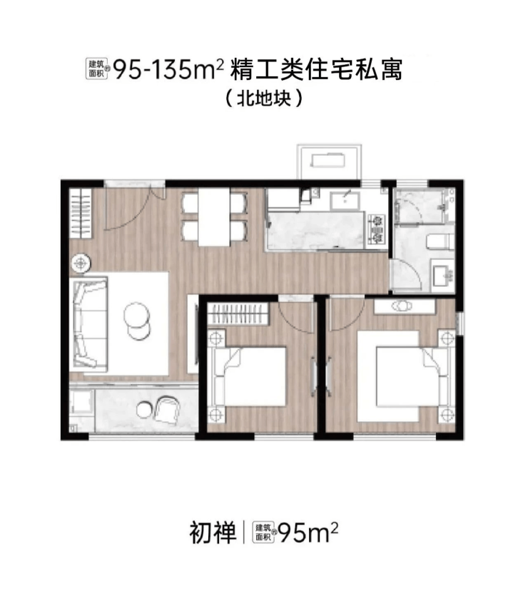 建筑面积约95-135㎡精工私寓、少量254-261㎡住宅底复(北地块)