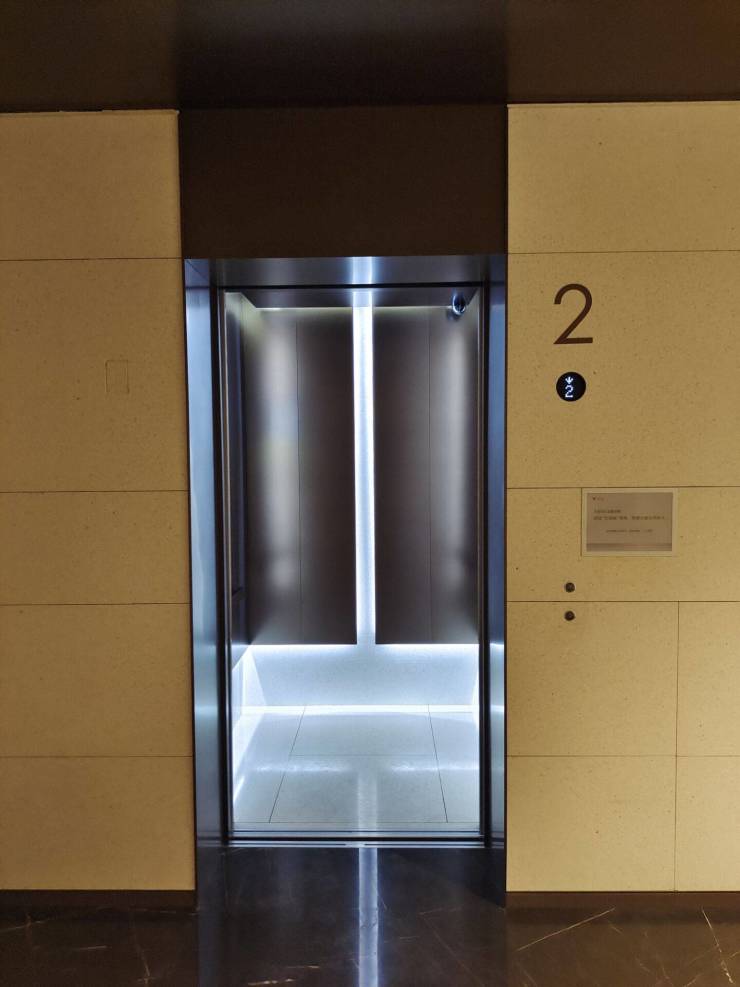 电梯均为进口品牌“东芝”,电梯厅采用不锈钢门套