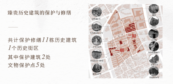 露香园境内拥有共计11栋保护修缮的历史建筑、1个历史街区,其中保护建筑两处、文物保护点5处.