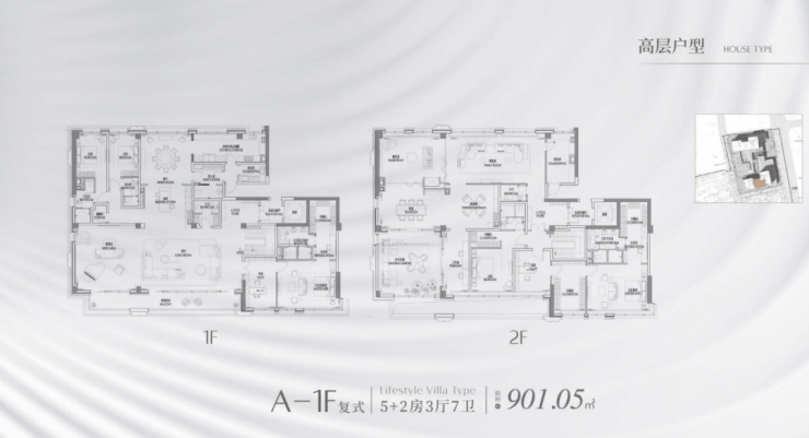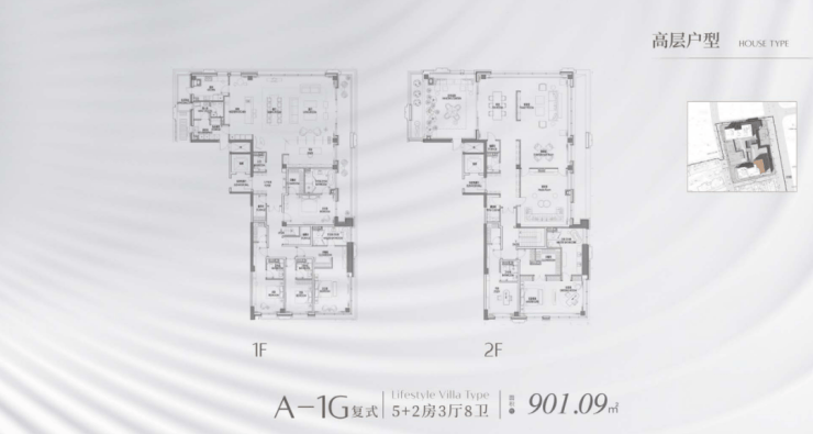 西边套是建面约370㎡左右的户型,中间套是建面约263-290㎡户型,东边套则是建面约490㎡左右的户型.3号楼还有两套顶复,建面约862-849㎡.