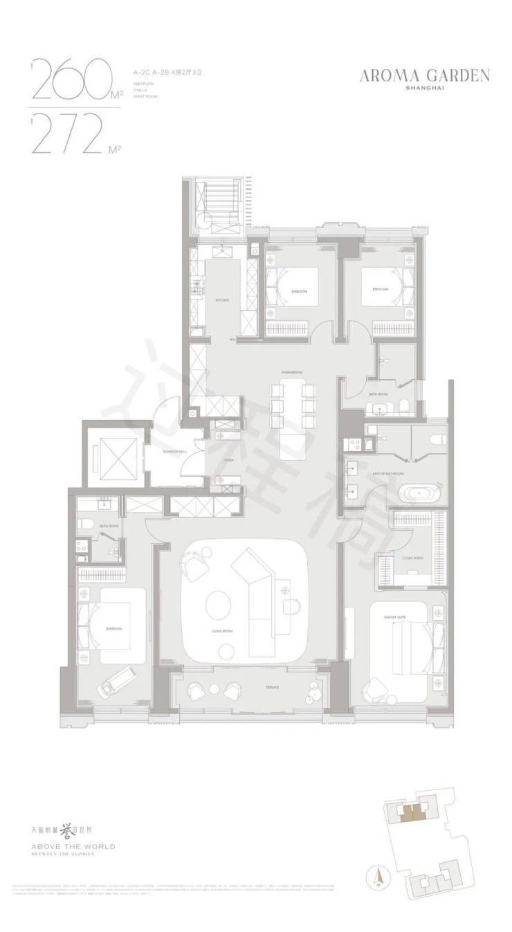 B住宅:约3.8万㎡高层产品,共177套,套均面积约216㎡;