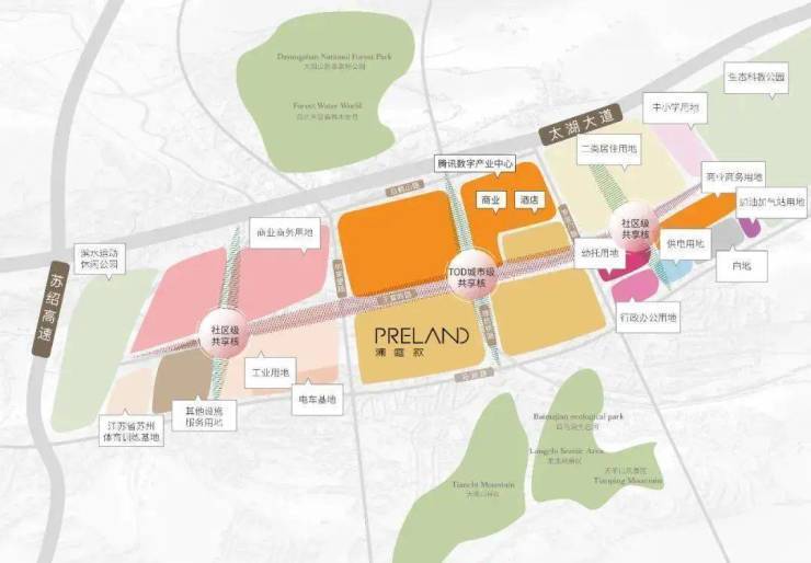 全龄教育资源:苏州外国语学校附属阳山幼儿园/苏州高新区实验小学分校秦馀小学校/苏州高新区景山实验初级中学/苏州高新区第一中学科技城校区;