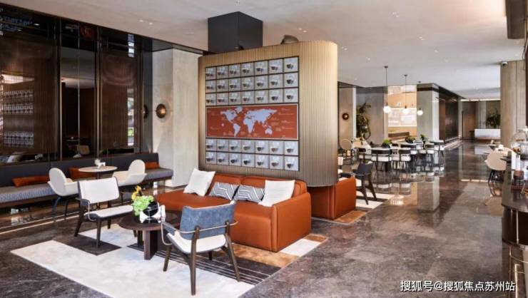 外立面辨识度很高,局部采用石材幕墙+精致木纹铝板,颜值时尚靓丽!