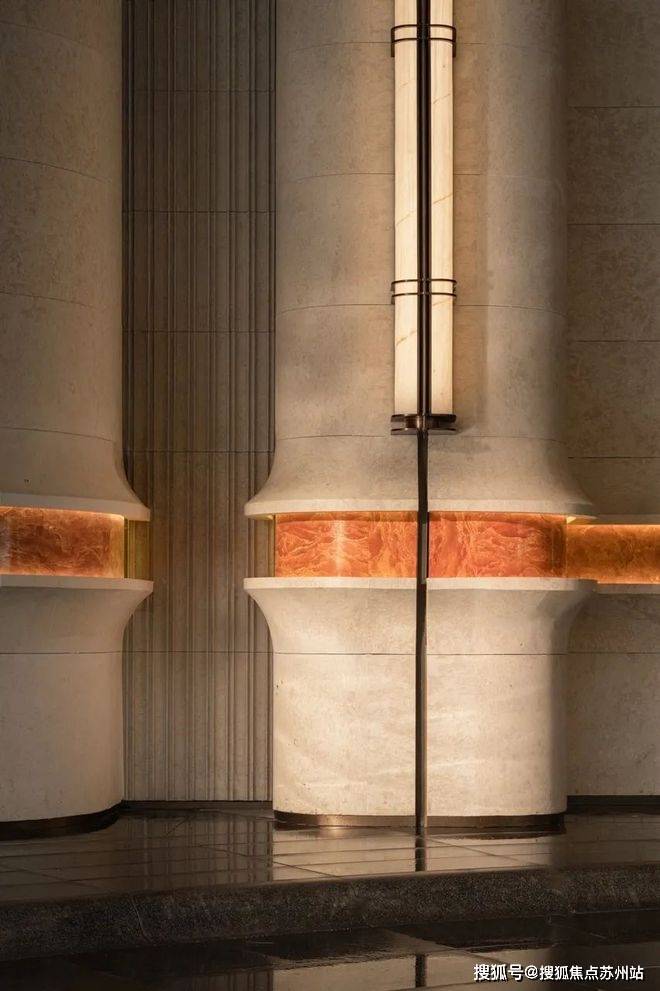 大量的艺术定制,让招商序化作耐人欣赏的艺廊。大门墙面橙皮红腰线定制,与沉香米黄石材形成鲜明撞色,仅这一项石材打磨,耗费就近百万