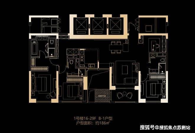 建筑面积约186㎡户型