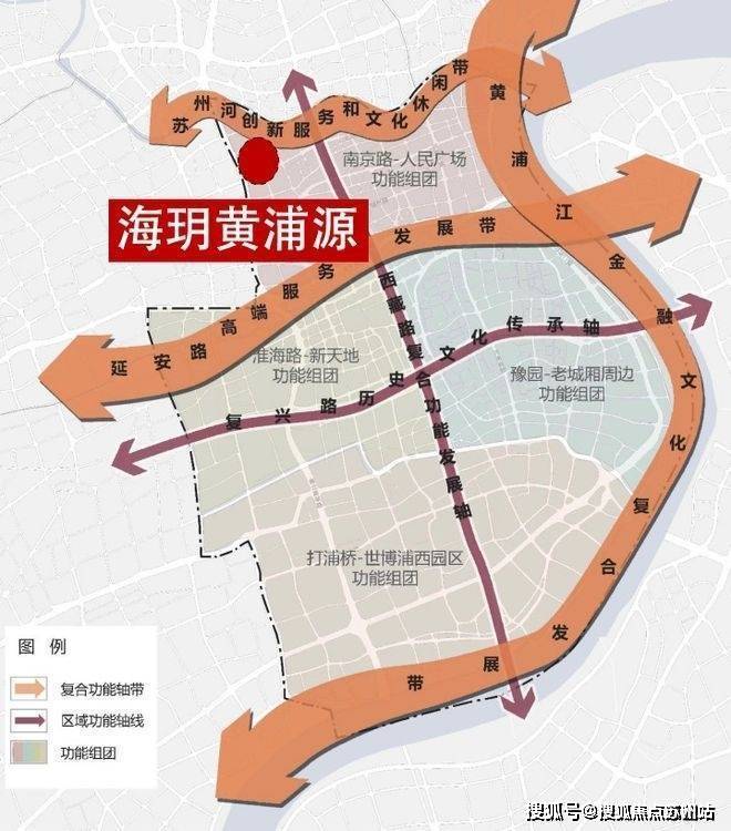 “苏州河创新服务和文化休闲带”重点发展创新和文化,“南京路-人民广场功能组团”将被打造成繁华的国际一流商务区和中央活动区,成为新时代上海面向全球的“心脏、窗口、名片”。