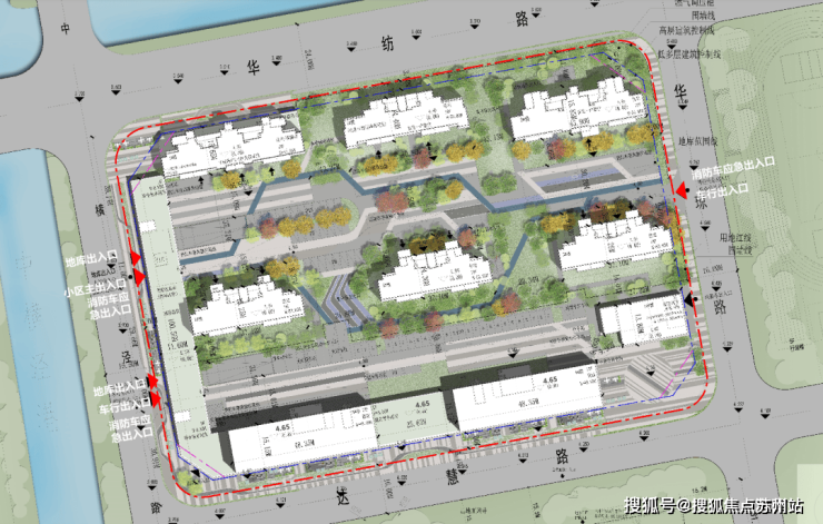 据悉,项目主要出入口分布在项目东侧中横泾路上,包含1个小区主出入口、2个地库出入口、1个车行出入口;另外西侧华琼路上还设置有一个车行出入口。