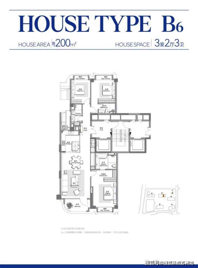 建筑面积约200㎡大三房, 双主卧套房设计,南向主卫带豪华卫浴四件套,北次卧邻次卫,准全套房户型,舒适度极高。