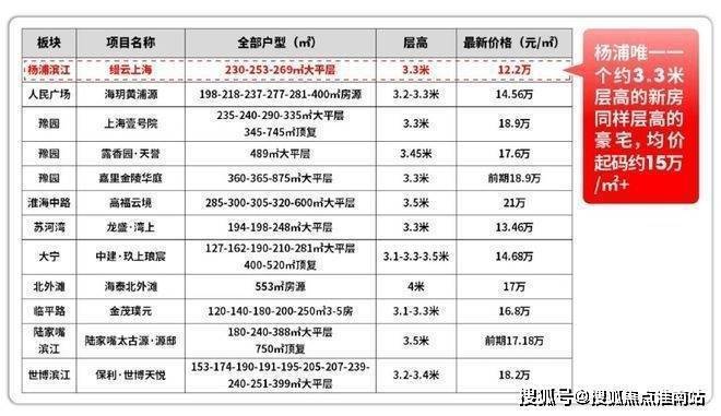 而同样层高的顶级豪宅们,起码都在约15万+的房价水平,但缦云上海的均价仅约12.2万/㎡。