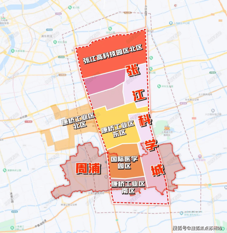 这个科南地区中心正是前文提及的中片区。根据2017年《张江科学城建设规划》的批准,规划中首次提出了“张江科学城衔接范围”的概念,并将总面积扩大到191平方公里。由此,周浦的整个中部地区被正式纳入张江科学城。
