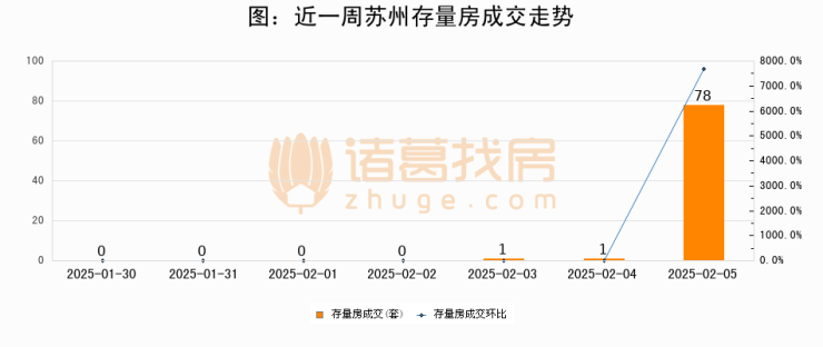 从存量房来看,2025年02月05日苏州存量房单日成交78套,比昨日增加77套,环比上涨7700%。从近一周存量房成交来看,苏州存量房日均成交套数为11套,02月05日单日成交78套,高于近一周平均水平609.1%。