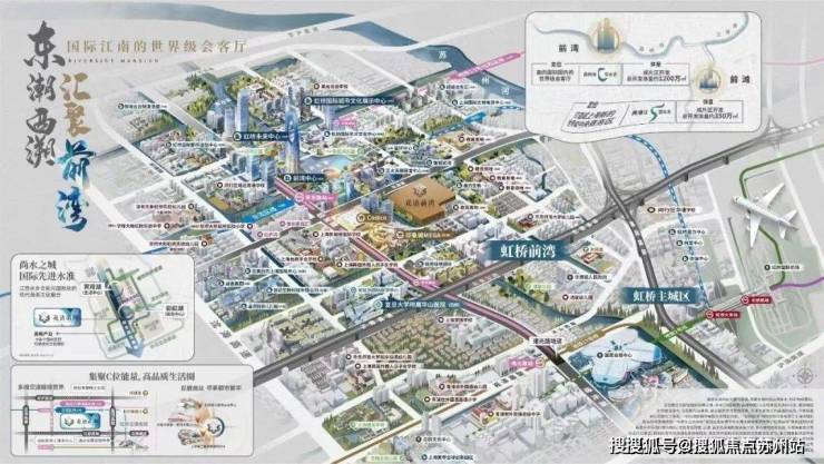而前湾也是成片开发,只是它规模比前滩更宏大。另外大虹桥周边普遍会限高,影响开发,但前湾不一样,受虹桥机场净空限高影响小,可“肆意”规划更高、更有想象力的天际线蓝图,这也决定它的上限是大虹桥中更高的!