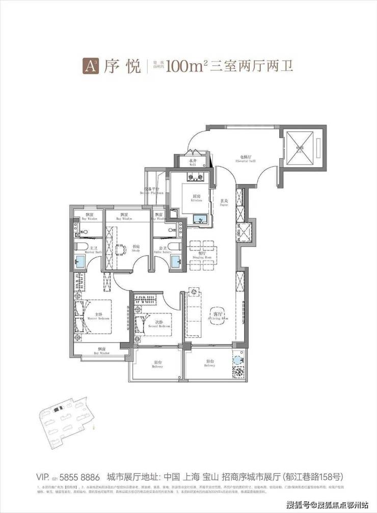 114㎡3房2卫户型,同样是南北3阳台的设计,客厅面积可以容纳一个大餐桌,在空间感方面确实没的说。招商序售楼处营销中心:400-8828-814招商序售楼处电话/地址☎:400-882-8814(开发商热线)