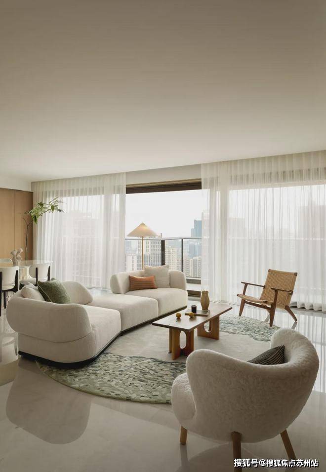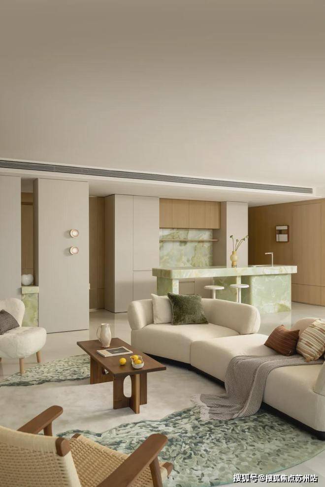 该项目整体的设计理念旨在追求一种内在的自然松弛感,将温润的材质与艺术的语言融会贯通,通过自然的肌理、温润雅致的石材、不同触感的面料之间组合糅合,演绎了现代人的生活美学,一场具有烟火气的艺术氛围就此展开。