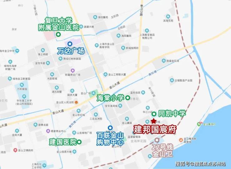 项目距离22号线金山卫站约750米建邦国宸府售楼处电话:400-902-3966