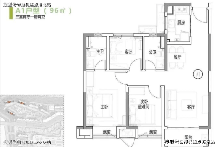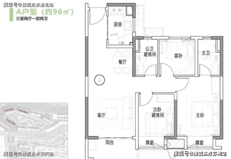 A户型 | 96平米3房2厅2卫√南北通透,三开间朝南√客餐厅一体,双倍款待生活√三梯六户,私密从容