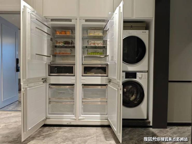 比别人更多的厨电交付。别人可能交付三件套、五件套,信安里交付七件套,还都是德系博世产品。博世两台嵌入式冰箱、洗衣机、烘干机、灶具、油烟机、蒸烤一体机等等,可以说诚意十足了。
