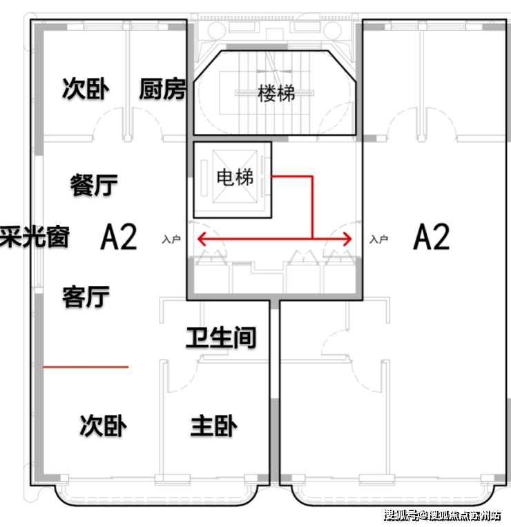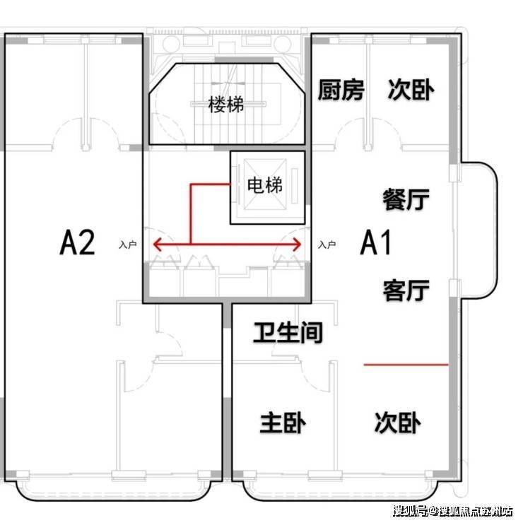 我画了一个示意图,右边这个A1的边套,是不是就是目前市面上非常常见的边套横厅设计,客餐厅大约有6米面宽,比市面上100平的5.2米要更实用,也更阔绰。