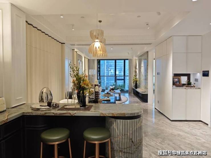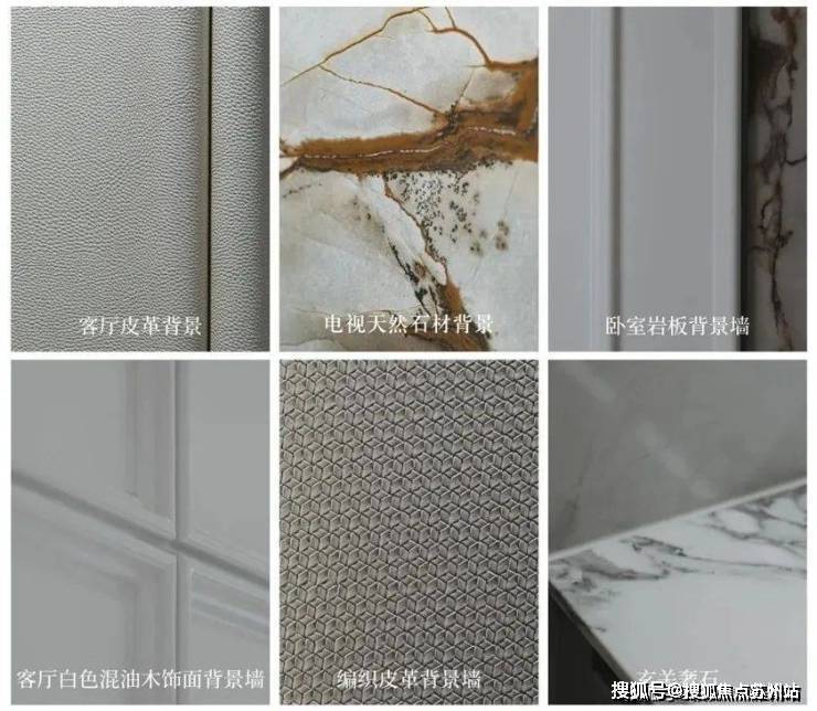 背景墙比别人更多一点。天然石材的电视背景墙,高级大气;编织皮革的客厅背景墙,充满质感;过度用的是白色木饰纹的背景墙,简约耐看;餐厅处又是白色皮革背景墙,大方优雅。整个空间过渡自然,增加了层次感和高级感。