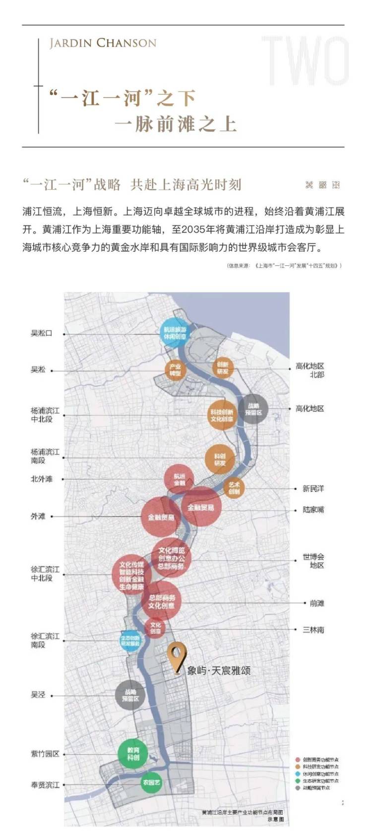 众所周知,项目高端城市资源高度集中在2大滨江黄金三角:由外滩-陆家嘴-北外滩构成的传统中央商务区,由前滩-徐汇滨江-世博构成的新兴中央活动区。其他所有板块几乎都是经由它的价值辐射。换言之,谁距离他们更近通勤更快谁就更有未来!