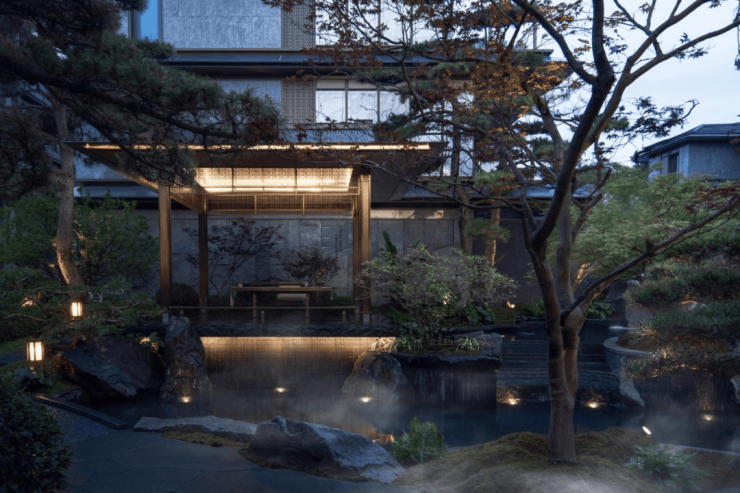 立体庭院,感受一步一景的山水画境:风雨连廊漫步,耳畔是流水淙淙,眼前是叠石苍松.约460㎡下沉庭院不像景观,更像一幅您就在其中的立体宋画,一草一木,都可触摸、可对话.