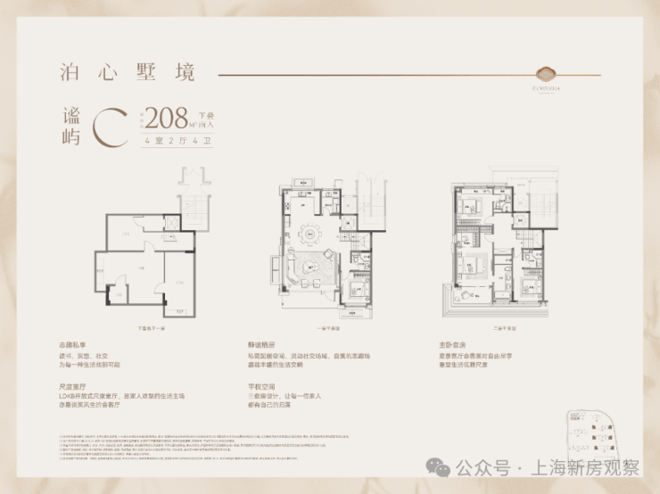 建面约208㎡下叠四房两厅四卫