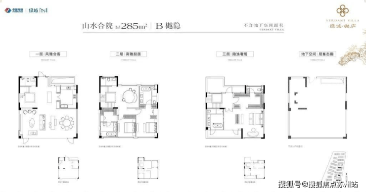 合院主力建面约285/315/325㎡三个面积段,均是地上三层。