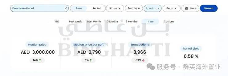 市中心公寓年中位价300万AED/套,同比上涨📈14%;