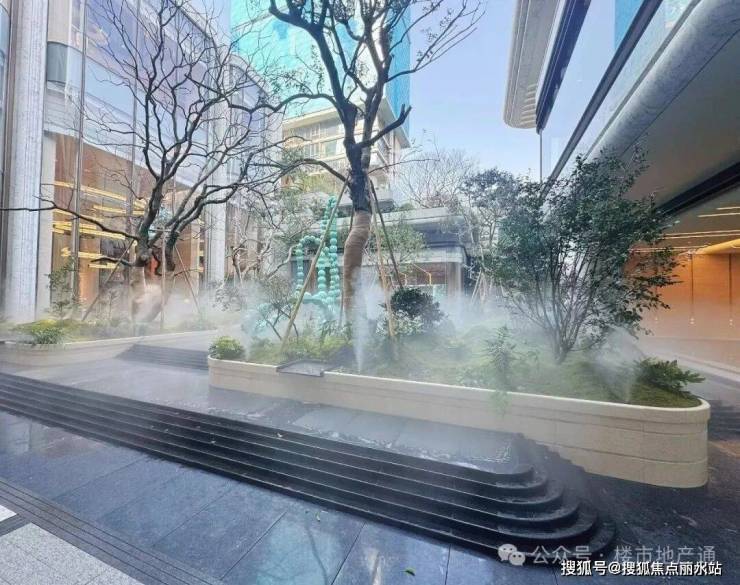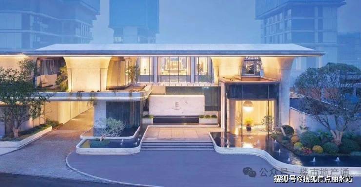 归家入户大门:门头宽40米,高度超11米,抬高之后大门更气派了,大面积的水景+两侧铁冬青、桂花树等搭配,吊顶由207块弧形铝板拼接而成,上方还有露天观景平台,整体大门风格有点像绿城平安桥TOD项目,奢石含量很高