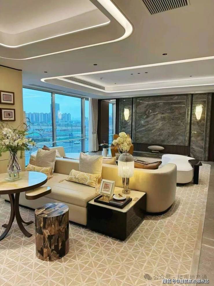 绿城·月映金沙庭售楼处电话:📞400-8228-664【预约看房热线】4)客餐厅:蒂芙尼灰大理石通铺到厨房(细节好评)、客厅丝绸之路背景墙(芝澜月华同款)、全屋墙纸