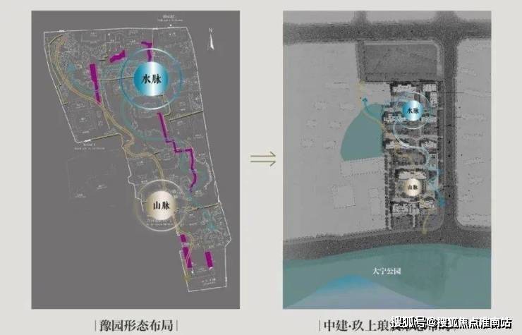「中建·玖上琅宸」的景观灵感也同样来自豫园.整个中轴线的动线源自豫园“山脉+水脉”的布置手法,景观蜿蜒曲折,遍布下沉庭院、绿植、叠瀑和水景,未来呈现会非常震撼.