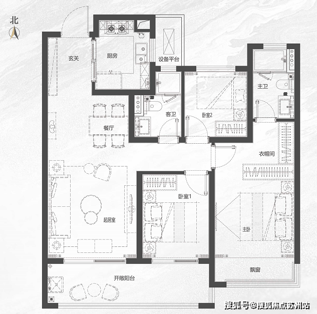 ② 南向阔景双阳台设计,且全屋赠送6个大飘窗,可360度环幕观景,整体户型使用率非常高,在整个苏州市场都尤为罕见。