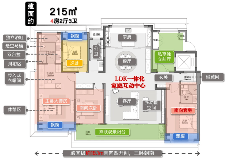 建屋·新棠玥只做165㎡起步的大户型,这就保证了整个高端社区的纯粹性和高圈层氛围。户型设计非常出彩,比如经典的四叶草格局,保证每个房间的独立与私密;超大的横厅连接阔景阳台,采光和视野一流;主卧套房配置拉满,居住尊严感十足。这就是为城市塔尖人群量身定制的改善住区生活场域。