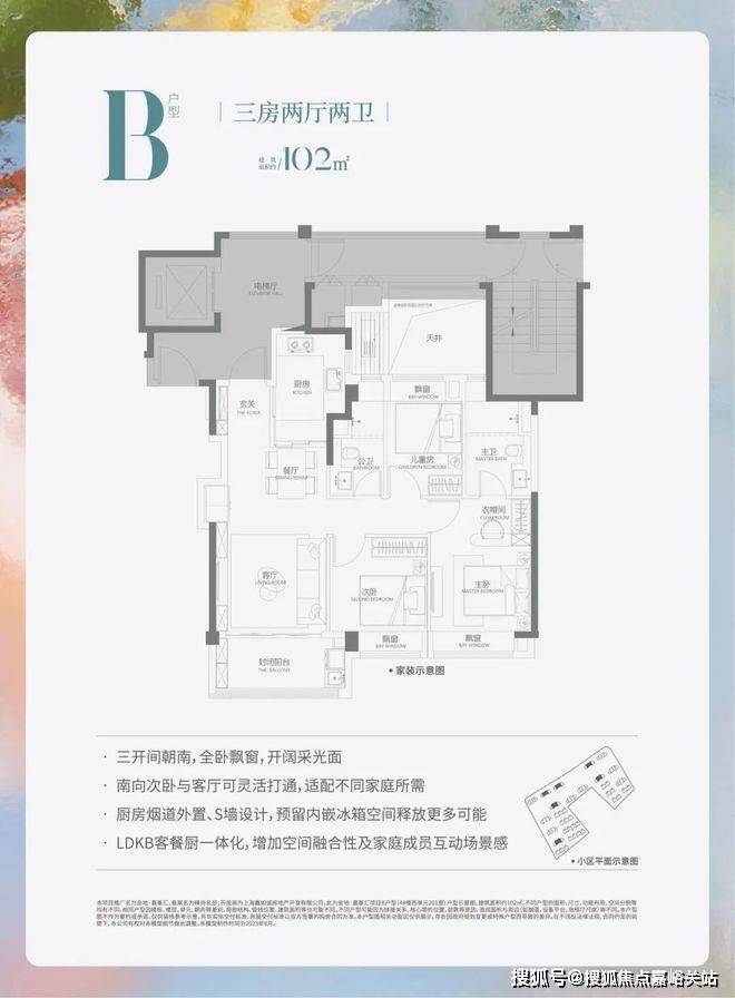 高层:建面约102㎡(3房2厅2卫)