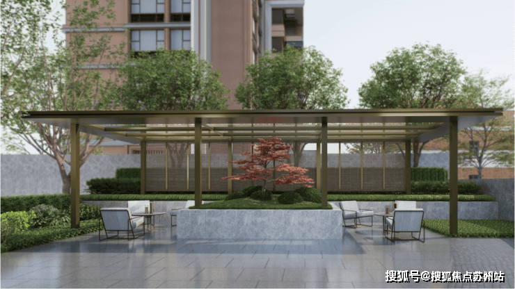 上海静安苏河湾1号售楼处电话☎:400-8787-554(预约看房热线)花间茶舍由铝板、玻璃顶以及金属帘,外加局部镂空的设计共同组成;