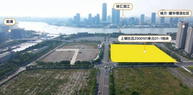 其中,07-1地块位于世博后滩“九宫格”,距离黄浦江约400米。地块占地面积39577方,容积率3.2,总建面126646方;总价886896万元,楼面价69989元/㎡。
