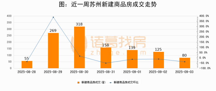 【苏州成交日报】09月03日新房成交80套、二手房191套;涨价房源16套