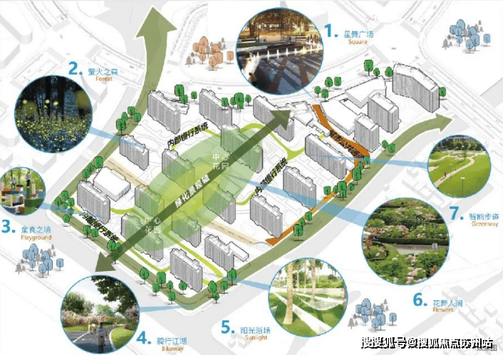 据悉社区由自持住宅、可售住宅、社区配套三大功能组合而成,北区为公区自持配套区,中区为住宅社区,南区为住宅社区及配套。