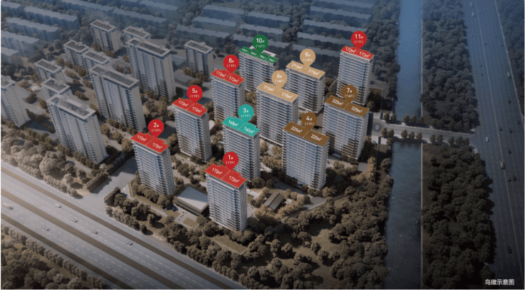 低密舒适社区:1.7的低容积率,仅19.8%的建筑密度,全是13-17层的小高层,楼间距开阔,采光通风极佳,住起来非常舒服,营造了优质的低密社区环境。