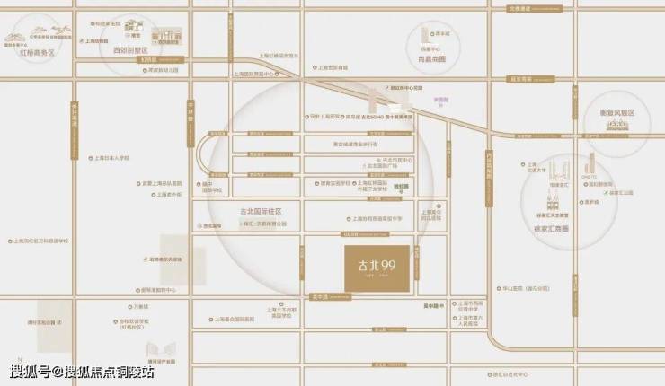 1-1.5公里步行圈:古北1699广场、黄金城道步行街、高岛屋、古北市民中心、体汇+名都体育公园、虹桥高尔夫球场、古北SOHO、程十发美术馆;2.5-3.5公里生活/商务圈:尚嘉中心、南丰城、老外街、世贸商城、徐家汇恒隆、新鸿基ITC、爱琴海购物中心、万象城、仙霞网球中心、西郊宾馆、虹桥迎宾馆、漕河泾开发区;