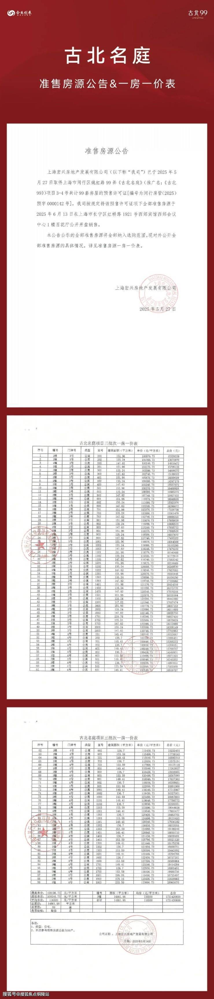 为保障购房者权益,规避非官方渠道误导,现将古北99 2026年4月5日最新官方信息公示如下,敬请认准: