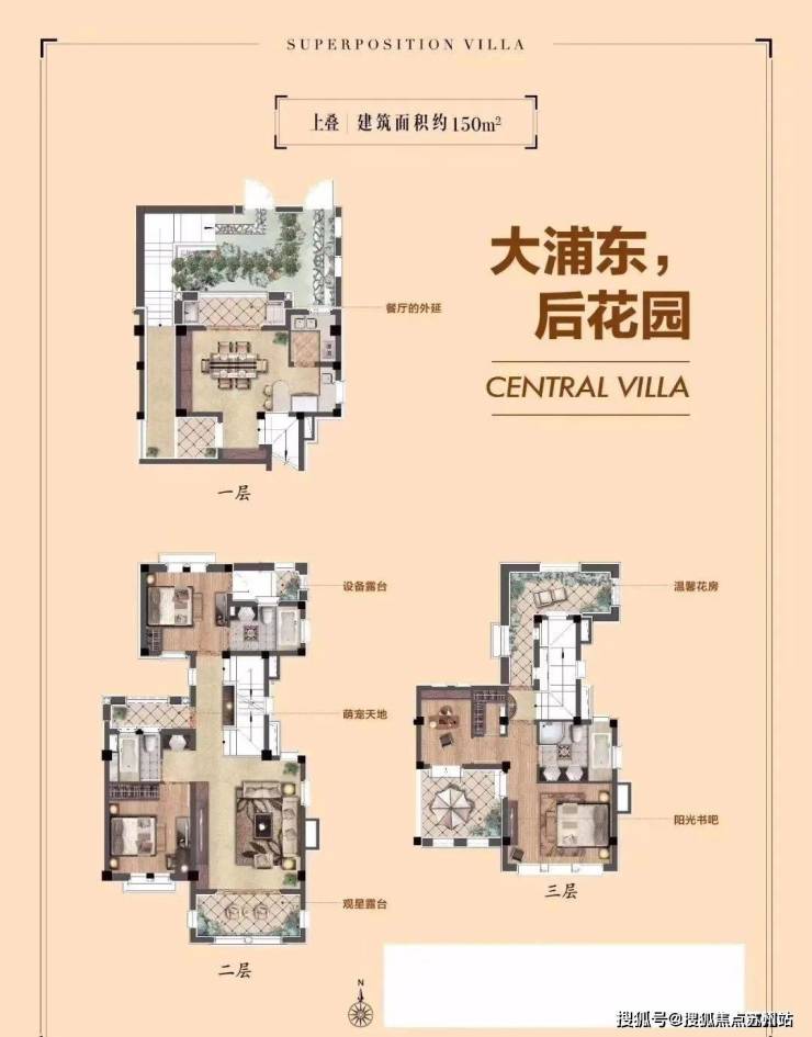 上叠户型是建筑面积150平米的三层,4房2厅中西双厨的全套房设计,特设独立花园入户通道,保障业主私密性。