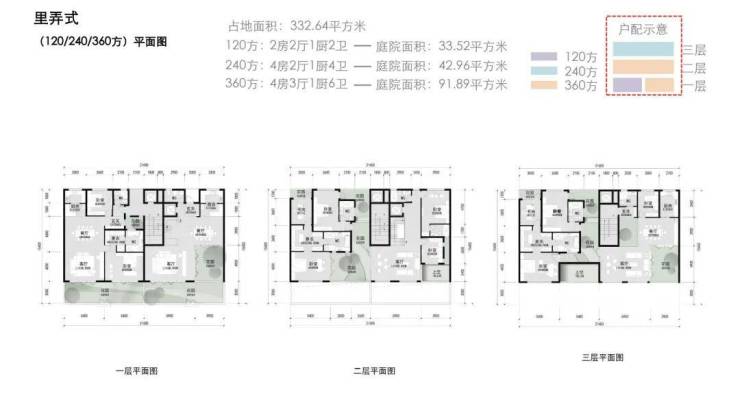 建面约290-360㎡宅院式合院;