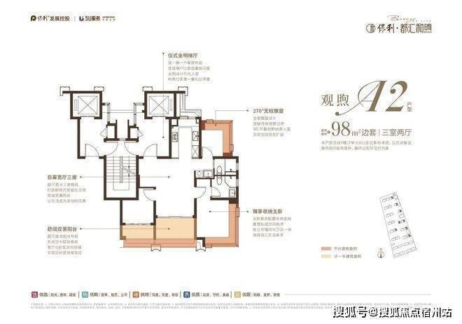 小高层类一梯一户、三阳台设计(部分户型)、保利·都汇和煦400-8123-664270°无柱飘窗(部分)