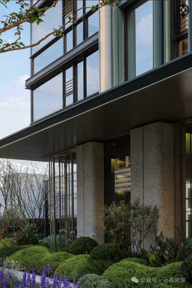 最后讲讲项目的建筑立面,它采用了爱马仕同款博斯普鲁斯绿,这种绿色在中国古文化里面名为黛青色,很好地承接了南翔这个板块的文化底蕴。