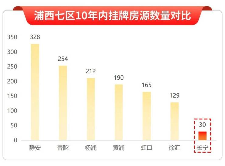 据链家网挂牌数据显示,目前长宁10年内次新房的挂牌量只有30套,还不到静安的十分之一!