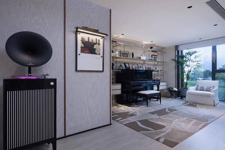 该户型是类独立电梯厅的设计,不仅维护了私密性,电梯厅也能成为家的延伸。